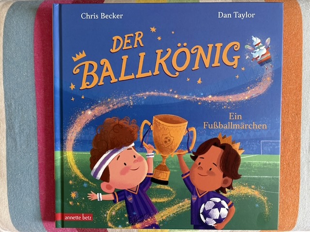 „Der Ballkönig“ ist aus dem Englischen übersetzt, der Originaltitel lautet „The Perfect Match“. Beide Titel finde ich super, schön spielerisch, mit Bezug auf Aschenputtel und Fußball – Volltreffer, sozusagen. Die Fußballmannschaft, in der Leo und der Prinz spielen, heißt „Lila Ritter“ bzw. „Purple Knights“. Lila, genauer Purpur, ist ja die Farbe der Könige und „Purple“ gilt auch als wichtige queere Farbe. Divers sind die zwei Kinderfußballmannschaften, mit Kids of Colour, Mädchen und Jungen kicken zusammen, einer trägt eine Brille und eine ein Hörgerät. Ein Buch also, das ganz unterschiedliche Familien ansprechen dürfte und natürlich vor allem solche mit Kindern, die Fußball lieben, so wie Ballkönig Leo.